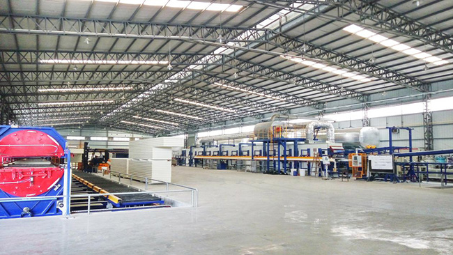 廣東第一條冷庫用金屬面絕熱夾芯板連續(xù)生產(chǎn)設(shè)備